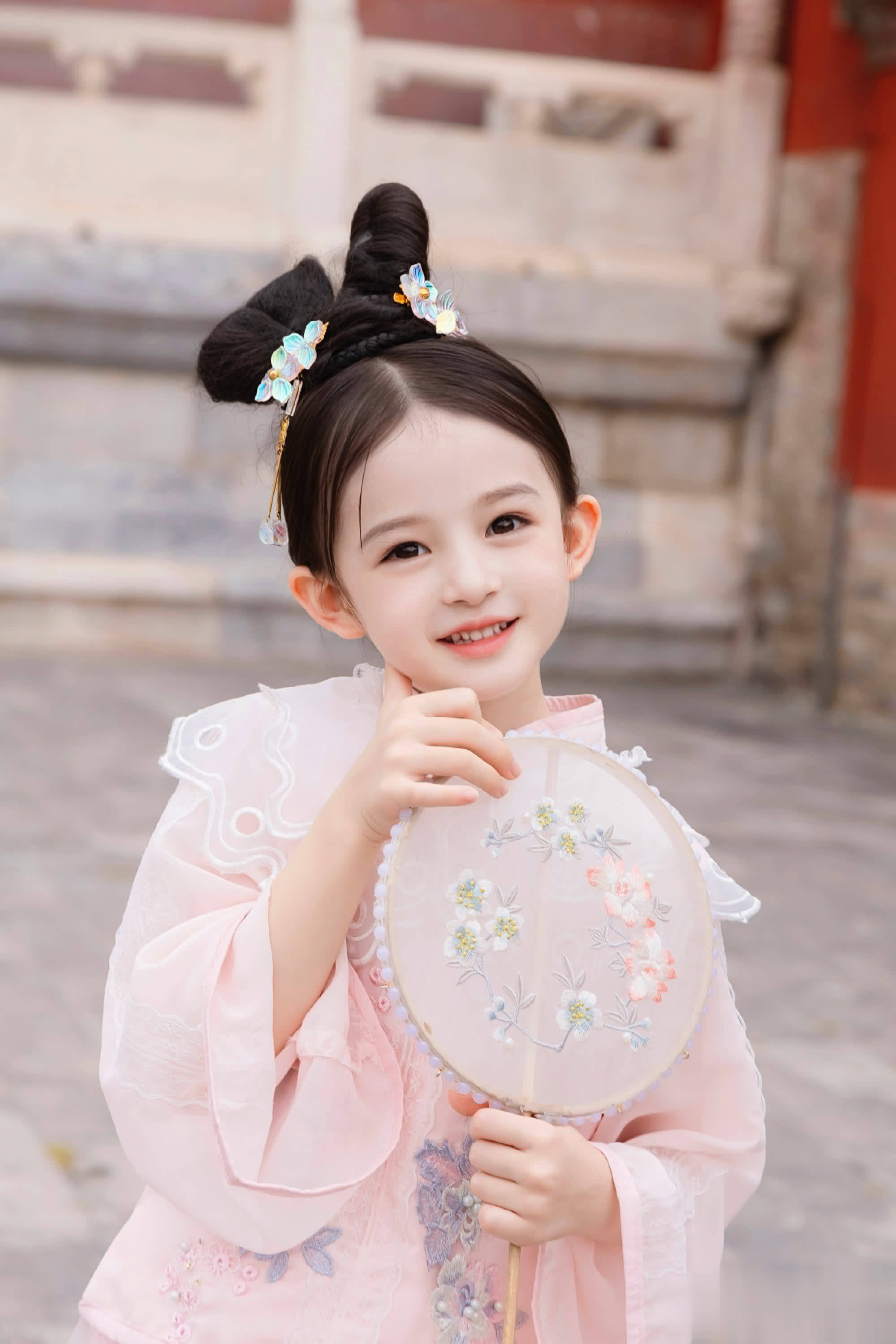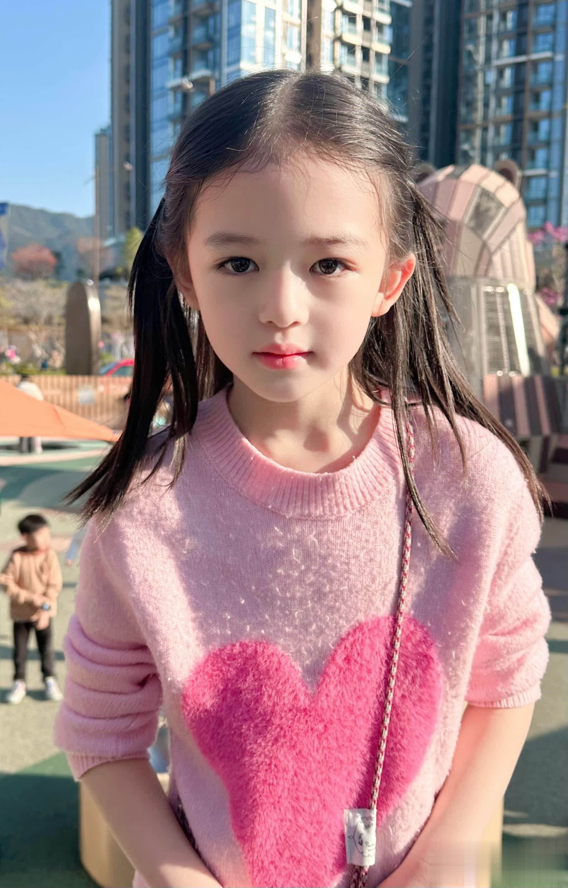 孩子五官漂亮,皮肤白皙,不用加滤镜,也不用妆容加持。